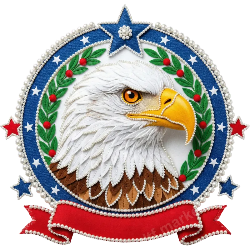 Patriotic Eagle Head DTF Transfer with Stars & Pearls Design
