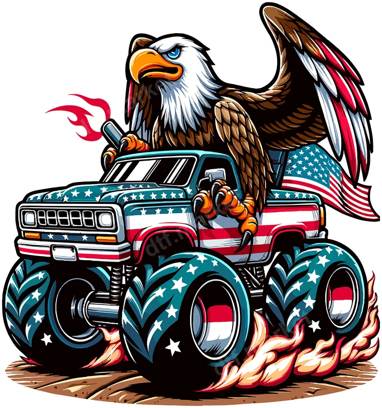 Patriotic Eagle Monster Truck DTF Transfer | American Flag Design