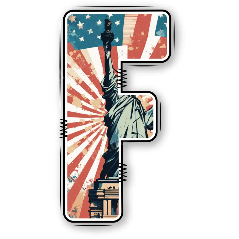 Patriotic F Letter DTF Transfer | Statue of Liberty & American Flag