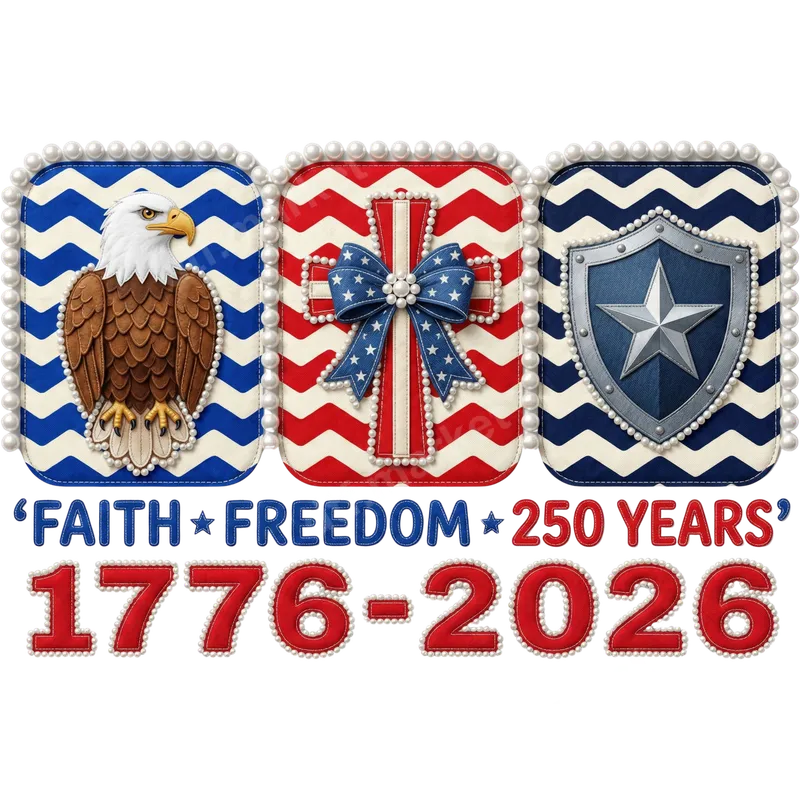 Patriotic Faith Freedom 250 Years 1776-2026 Eagle Shield DTF Transfer