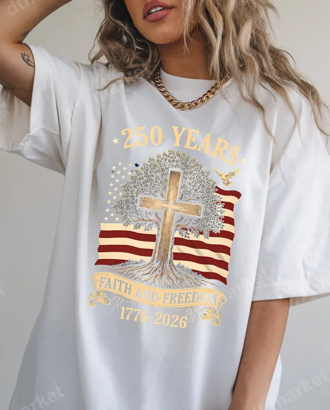 See allThis striking DTF transfer features a powerful design commemorating 250 years of American history, spanning 1776 to 2026. At its heart, a majestic tree forms a cross, symbolizing enduring faith and growth, set against a backdrop of a distressed American flag with its iconic stars and stripes. A graceful dove of peace soars above, while a banner proudly declares 'Faith and Freedom' and the significant dates. This ready to press design beautifully blends patriotism with spiritual conviction. Perfect for patriots, faith-based individuals, and anyone celebrating American heritage, this design is ideal for Independence Day (4th of July), Memorial Day, patriotic rallies, church events, or everyday wear. It makes a thoughtful gift for veterans, church members, or family members who value the foundational principles of the USA. Show your pride and belief by customizing apparel for commemorative events or personal expression. Applying this heat press transfer is incredibly easy, making it perfect for both small businesses and DIY enthusiasts. Our durable iron on transfer works seamlessly on a wide range of fabrics, including 100% cotton, polyester, and various blends. For best results, use a heat press at 300-325°F for 15 seconds with medium pressure, followed by a cold peel. Unlike vinyl transfers, there's no tedious weeding required – just press and go! Experience superior quality with our direct to film transfer. These apparel transfers boast vibrant colors, exceptional detail, and a soft-to-the-touch finish that feels like part of the fabric. Engineered for longevity, the designs are highly durable, crack-resistant, and won't peel after washing. Each design is printed on professional DTF film with a strong, reliable adhesive, ensuring a lasting and professional-looking garment every time.