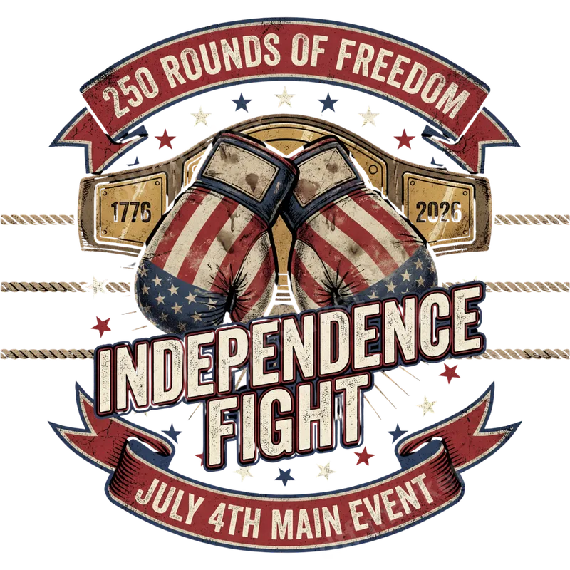 See allUnleash your patriotic spirit with this striking Independence Fight DTF transfer, celebrating "250 Rounds of Freedom." This vintage-inspired direct to film transfer features gritty American flag boxing gloves, framed by a championship belt with "1776" and "2026" dates, commemorating a significant milestone. The bold text "INDEPENDENCE FIGHT" and "JULY 4TH MAIN EVENT" completes this powerful, ready to press design, making it a standout for any apparel. This robust heat press design is ideal for patriots, veterans, boxing enthusiasts, and anyone who cherishes American freedom. Perfect for July 4th celebrations, Memorial Day events, or as a thoughtful gift for history buffs and freedom fighters. Customize t-shirts, hoodies, jackets, or tote bags with this unique iron on transfer and proudly display your pride. Applying this apparel transfer is effortless. It's compatible with a wide range of fabrics, including cotton, polyester, and their blends. Simply use a heat press at 300-325°F for 15 seconds with medium pressure. For home users, a household iron can also achieve excellent results. Best of all, there's no weeding required, making your customization process quick and hassle-free. Experience professional-grade quality with vibrant colors that pop and a soft, comfortable feel. Our premium DTF film ensures your design is crack-resistant, peel-resistant, and built to last through countless washes. This durable heat transfer provides a long-lasting, high-quality finish, ensuring your patriotic statement stays bold and true.