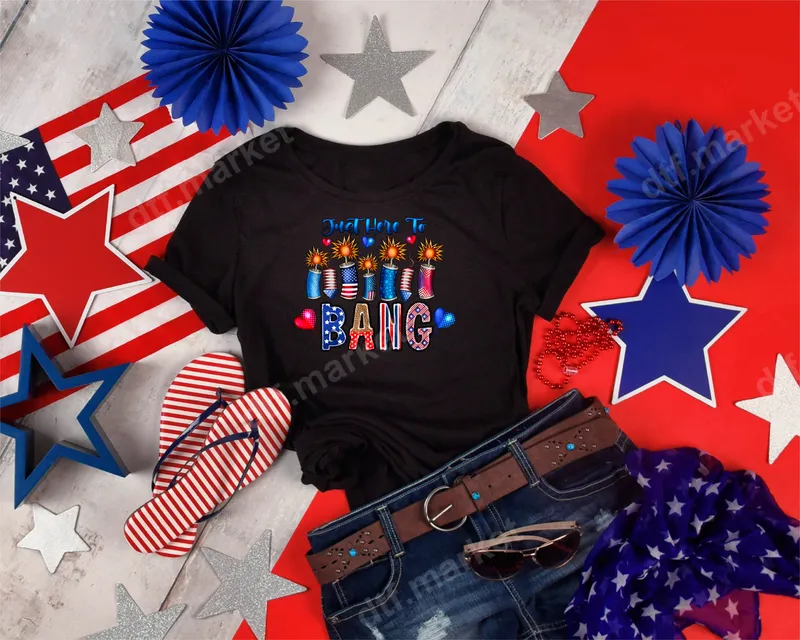 Patriotic "Just Here To BANG" DTF Transfer with Fireworks | 4th of July Design