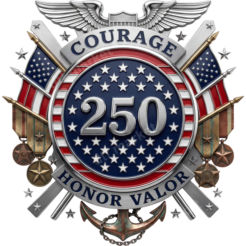 Patriotic Military 250 Honor Valor Crest DTF Transfer