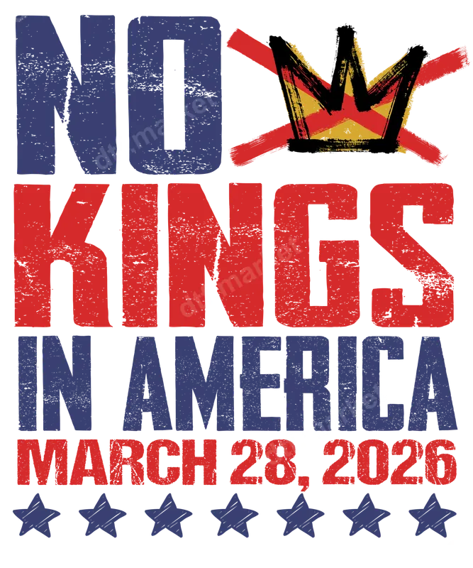 See allThis powerful "No Kings In America" DTF transfer makes a bold patriotic statement, featuring distressed red and blue lettering reminiscent of the American flag. The striking design includes a stylized, crossed-out crown, asserting a firm stance against monarchy or undue power. The specific date, March 28, 2026, adds a unique and timely dimension to this ready to press design, culminating with a line of five classic stars, embodying a spirit of independence and freedom. This heat transfer is ideal for patriots, history buffs, or anyone passionate about American liberty and democracy. It's perfect for political rallies, election events, 4th of July celebrations, or everyday wear to spark conversation. Consider it a unique gift for friends and family who value freedom and want to express their convictions. This iron on transfer also appeals to those who appreciate vintage-style political graphics. Our direct to film transfer is incredibly versatile, suitable for application on a wide range of fabrics including cotton, polyester, and various blends. Applying your design is simple: use a heat press at 300-325°F for 15 seconds with medium pressure, or follow the detailed instructions for a household iron. Forget the hassle of weeding; this heat press design comes fully prepared, saving you time and effort. Experience superior quality with our professional-grade DTF transfer. Each t-shirt transfer boasts vibrant colors that pop, exceptional durability with crack-resistant properties, and a surprisingly soft feel once applied. Crafted using premium DTF film and strong adhesive, your apparel transfer will withstand numerous washes, ensuring your message remains clear and impactful for years to come.