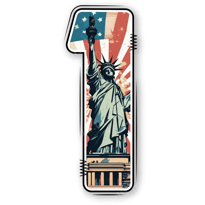 Patriotic Number 1 DTF Transfer | Statue of Liberty & US Flag Design