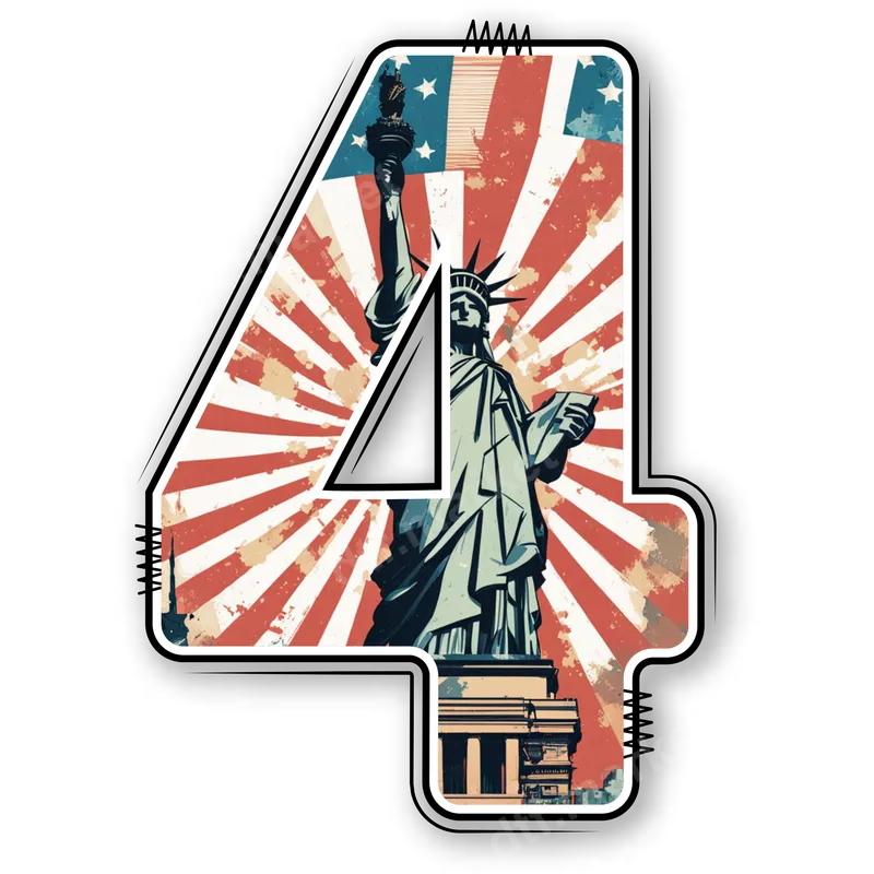 Patriotic Number 4 DTF Transfer | Statue of Liberty & American Flag