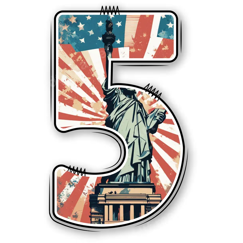 Patriotic Number 5 DTF Transfer - Statue of Liberty & USA Flag Design