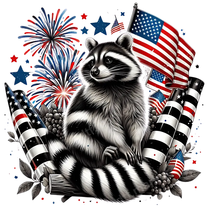 Patriotic Raccoon 4th of July DTF Transfer | American Flag Fireworks