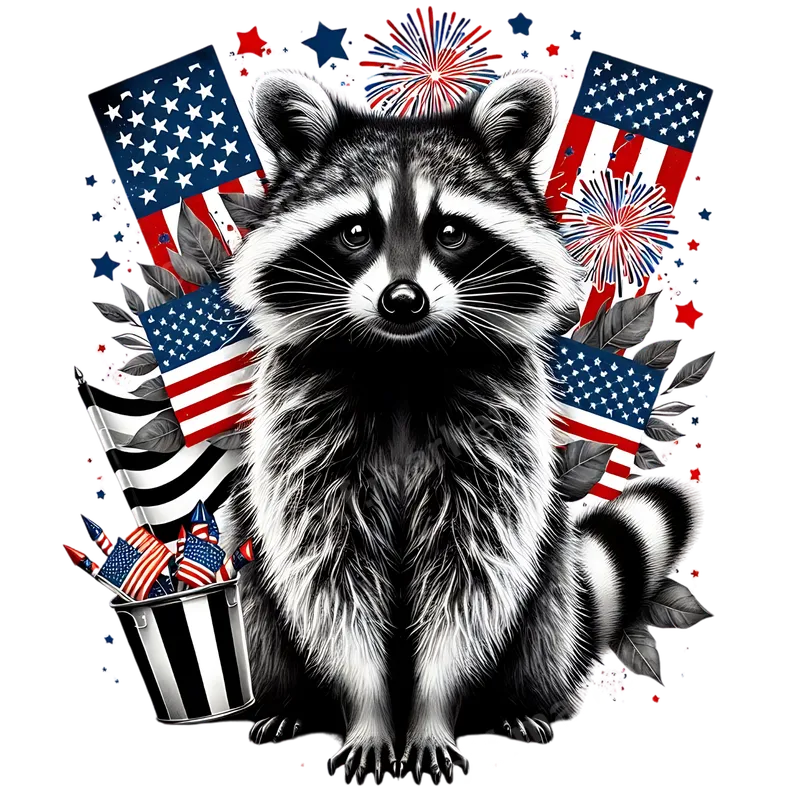 Patriotic Raccoon American Flag Fireworks DTF Transfer Design