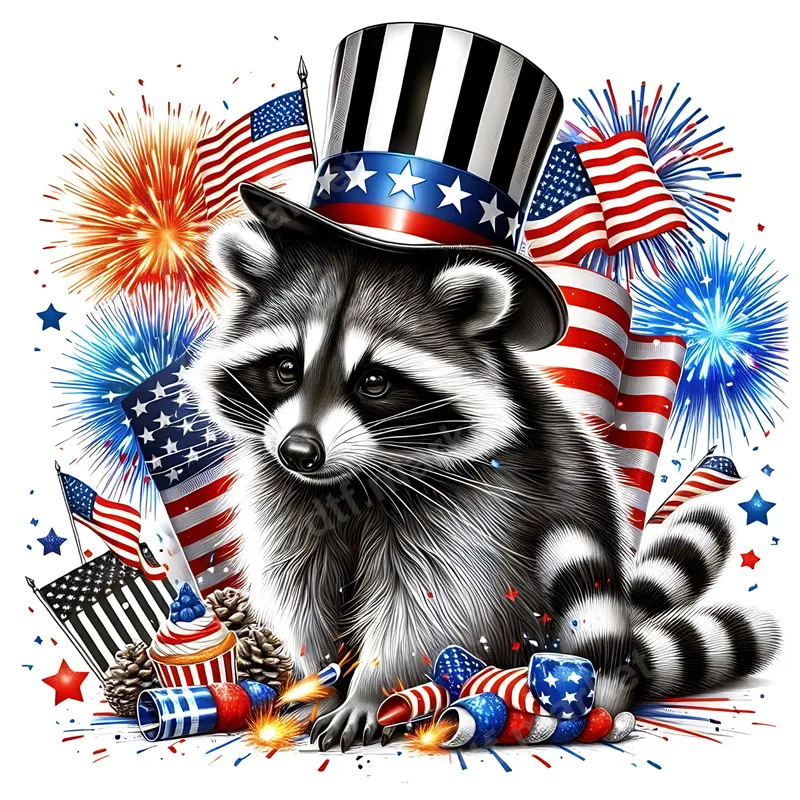 See allThis vibrant ready to press DTF transfer features an endearing raccoon sporting a classic Uncle Sam top hat, surrounded by bursting fireworks, waving American flags, and festive sparklers. It perfectly captures the spirit of Independence Day with a playful twist, making it an ideal choice for anyone looking to add a unique touch to their patriotic apparel. Perfect for celebrating the 4th of July, Memorial Day, or any patriotic event, this design is a fantastic option for families, friends, and community groups. It makes a delightful gift for crafters, raccoon enthusiasts, or anyone who loves American-themed festivities. Whether you're attending a backyard BBQ or a parade, this charming design ensures you stand out. Applying this heat transfer is simple and efficient. It works beautifully on a wide range of fabrics including cotton, polyester, and blends. For best results, use a heat press at 280-300°F for 6-10 seconds with medium pressure, then instantly peel for a smooth finish. This easy-to-use iron on transfer requires no weeding, saving you time and effort compared to traditional vinyl transfers. Crafted using professional-grade DTF film, this heat press design boasts exceptional vibrancy, outstanding crack resistance, and a super soft feel that integrates seamlessly with your garment. The strong adhesive ensures your shirt design remains durable wash after wash, delivering a high-quality finish every time. Elevate your custom t-shirt transfer projects with this premium direct to film transfer.