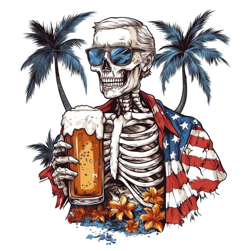 Patriotic Skeleton Beer Lover DTF Transfer - Summer Party Heat Press Ready