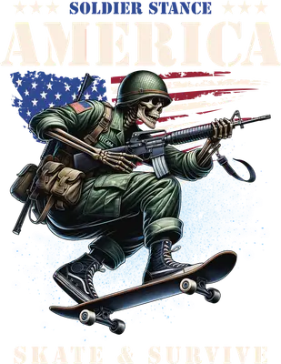 Patriotic Skeleton Soldier Skateboard DTF Transfer - America Skate & Survive