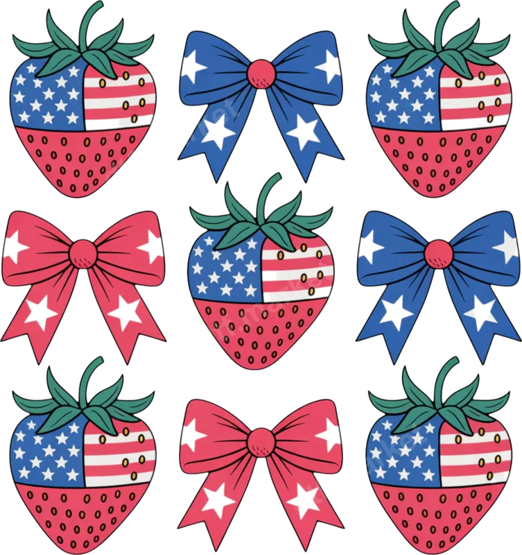 Patriotic Strawberry & Bow DTF Transfer | 4th of July Ready to Press Design