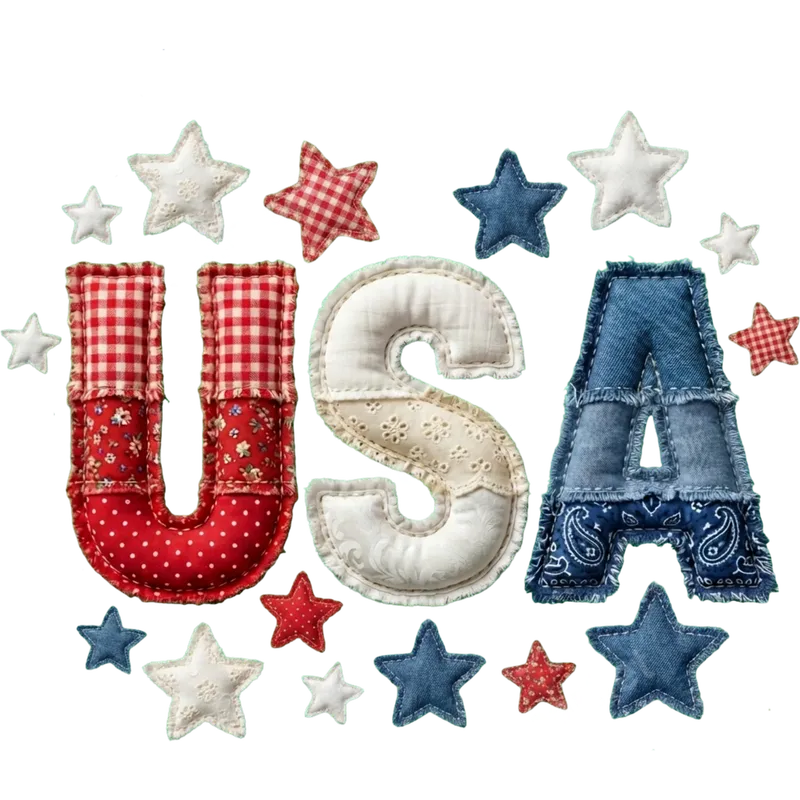 Patriotic USA Fabric Letters & Stars DTF Transfer