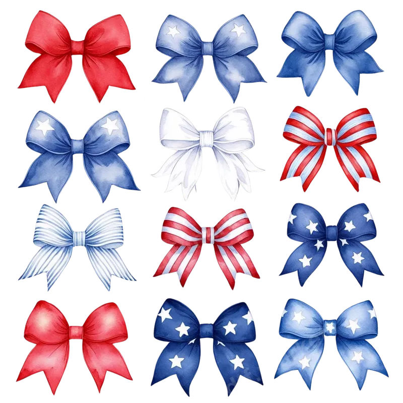 Patriotic Watercolor Bows DTF Transfer | Red White Blue Stars Stripes