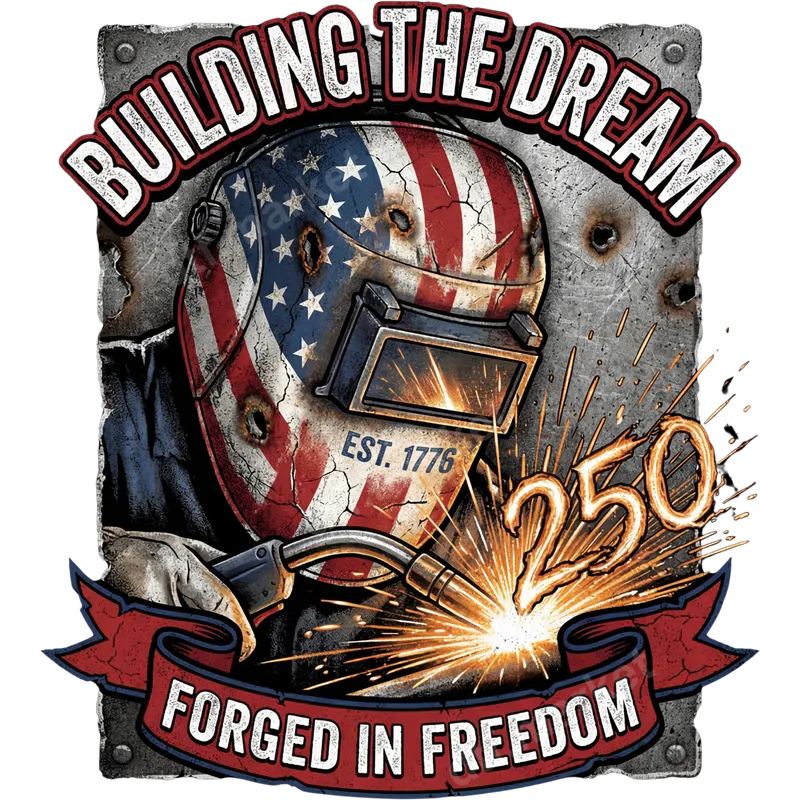 See allThis striking DTF transfer features a rugged welder in a distressed American flag helmet, actively welding with sparks. "BUILDING THE DREAM" arcs above, with "EST. 1776" on the helmet and "FORGED IN FREEDOM" below. This design combines blue-collar strength with patriotism, ideal for showcasing dedication and national pride. It's a vivid, ready to press transfer celebrating hard work and liberty. This patriotic heat transfer is perfect for skilled tradesmen, welders, construction workers, and anyone in hands-on professions embodying American ingenuity. It's an excellent choice for patriotic holidays like the 4th of July, Memorial Day, or Veterans Day, or as a thoughtful gift for a dad, husband, or friend. Celebrate the upcoming 250th anniversary of America with this iconic design, perfect for daily pride. Applying this iron on transfer is incredibly simple, requiring no weeding. Our high-quality direct to film transfers adhere beautifully to cotton, polyester, and various blends. For best results, use a heat press at 300-325°F for 15 seconds with medium pressure. A household iron can also be used, making it accessible for everyone to create custom apparel. Experience the superior quality of our professional-grade DTF transfers. This apparel transfer boasts vibrant, crisp colors and exceptional durability. It's engineered to be crack-resistant, fade-resistant, and incredibly soft to the touch, ensuring comfort and longevity. Made with strong adhesive, your design will stay securely attached wash after wash, maintaining its professional look on any garment.