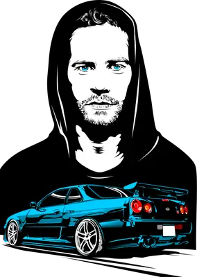 Paul Walker Tribute & Blue Skyline GT-R Car DTF Transfer