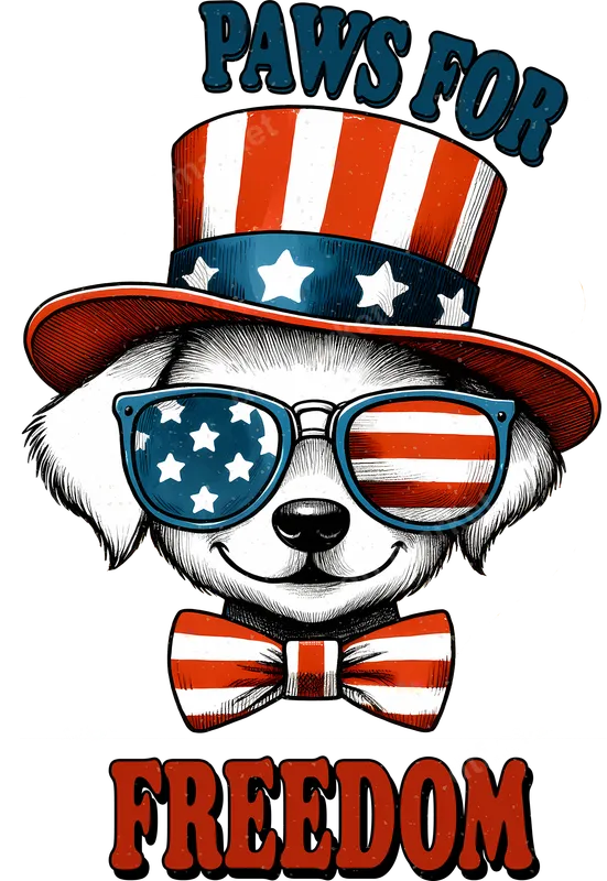 Paws For Freedom Patriotic Dog DTF Transfer | USA Hat Sunglasses Bowtie