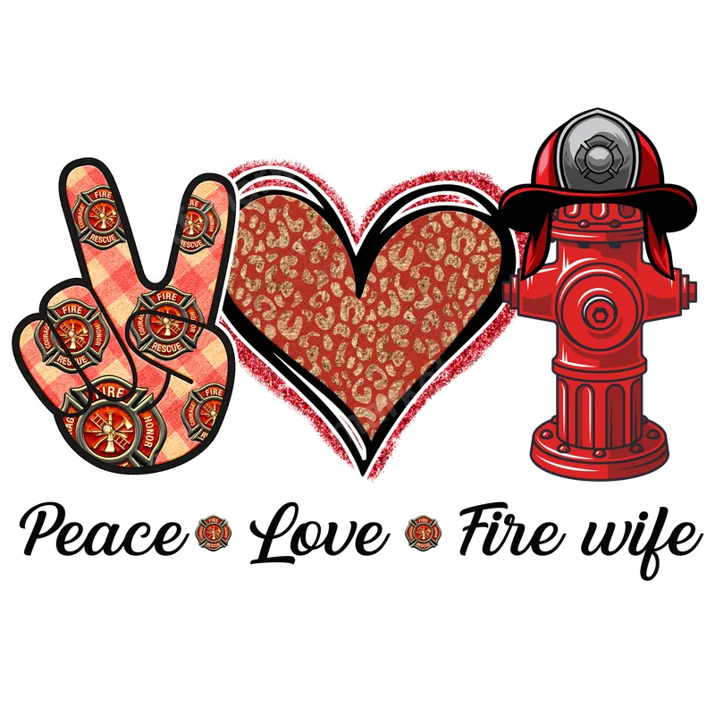 Peace Love Fire Wife DTF Transfer | Firefighter Spouse Design