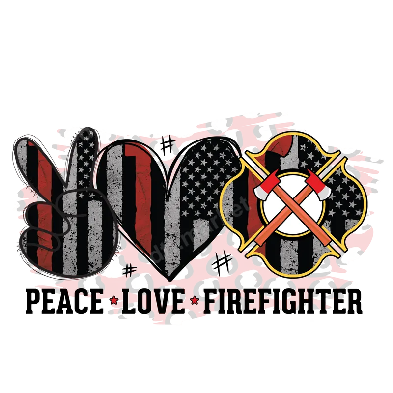 Peace Love Firefighter Thin Red Line DTF Transfer Distressed Flag