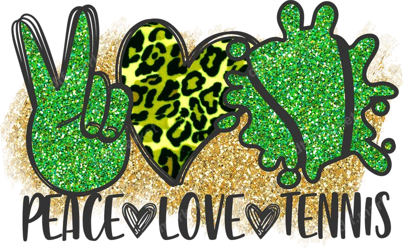 Peace Love Tennis DTF Transfer | Green Glitter & Leopard Print Design