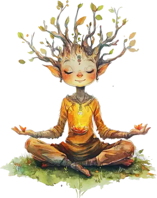 Peaceful Tree Spirit Meditating Watercolor DTF Transfer