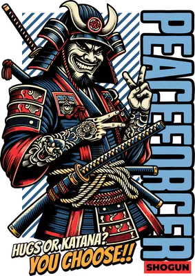 Peacekeeper Shogun Samurai DTF Transfer - Hugs or Katana Design