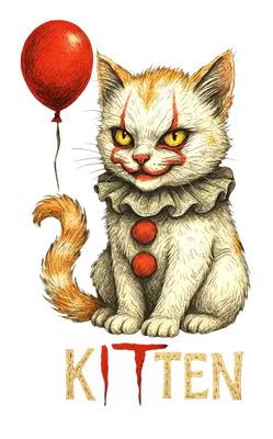 Pennywise Clown Kitten DTF Transfer | IT Horror Cat Ready to Press Design