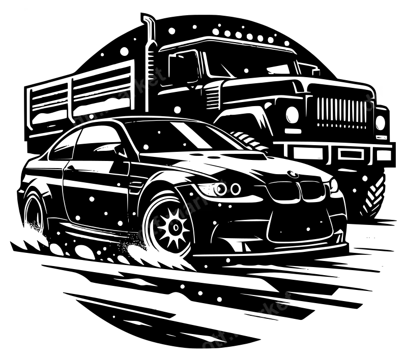 See allUnleash the raw power and dynamic energy with this striking black and white DTF transfer featuring a sleek performance sports car leading a robust heavy-duty dump truck. This graphic captures the thrill of the open road and the grit of hardworking vehicles, presented in a crisp, stylized design that’s ready to press. Perfect for anyone who loves the roar of an engine or the strength of industrial machinery, this design is an instant classic for custom apparel. This unique design is ideal for car enthusiasts, truck drivers, mechanics, or anyone involved in automotive culture. It makes an excellent gift for birthdays, Father's Day, Christmas, or as a special treat for yourself. Show off your passion at car shows, local races, or simply as everyday wear. It's a versatile piece that speaks to both speed lovers and those who appreciate heavy-duty machinery. Applying this incredible heat transfer is quick and easy. Simply use a heat press at 300-325°F for 15 seconds with medium, even pressure. This iron on transfer works flawlessly on a wide variety of materials, including cotton, polyester, and most fabric blends. Forget about tedious weeding; your design comes pre-prepared and ready for immediate application, ensuring a smooth, professional finish every time. Experience superior quality with every t-shirt transfer. Our DTF transfers boast vibrant colors (even in this black & white design, the crisp lines are stunning), excellent crack resistance, and a super soft hand feel, integrating seamlessly with your garment. Crafted from professional-grade DTF film with strong adhesive, this design is built to last through countless washes, maintaining its sharp look and feel.