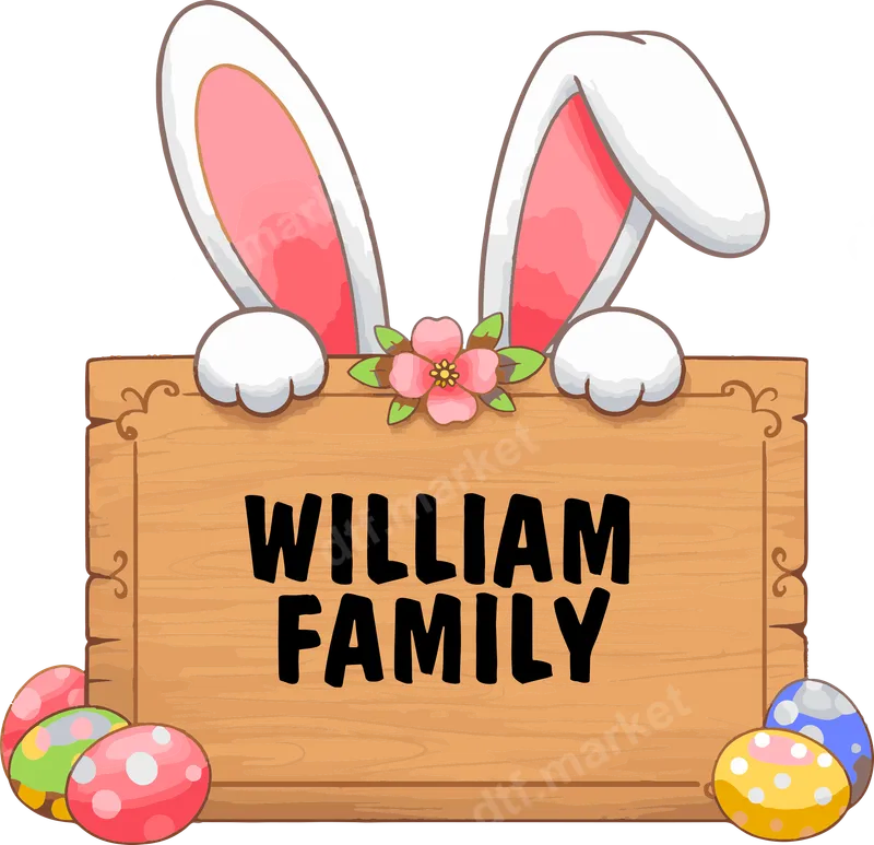 Personalized Easter Bunny Family DTF Transfer - Custom Name Sign