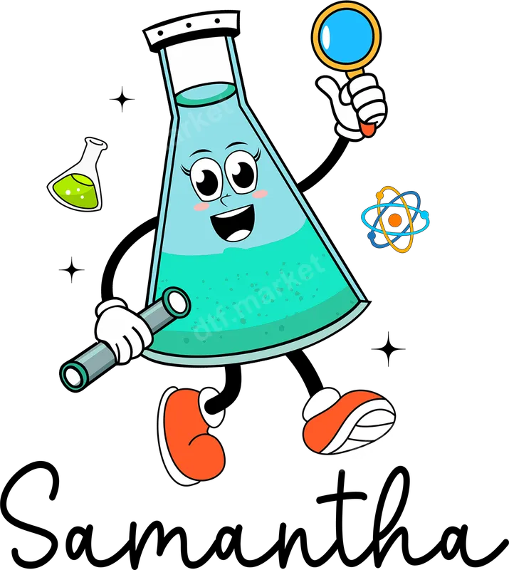 See allUnleash your inner scientist with this charming retro-inspired DTF transfer, showcasing an anthropomorphic Erlenmeyer flask bursting with personality. This fun design features the flask character holding a magnifying glass and a test tube, surrounded by a tiny atom and a smaller flask, all accented by the personalized name "Samantha" in a stylish script font. This vibrant and playful ready to press transfer is perfect for anyone with a love for learning and a nostalgic appreciation for classic cartoons. This unique design is ideal for science teachers, STEM students, educators, or anyone who enjoys a touch of academic flair with a whimsical twist. It makes a fantastic gift for back to school, teacher appreciation days, science fair participants, or birthday celebrations for budding scientists. Customize t-shirts, hoodies, or tote bags to show off your passion for discovery and learning. Applying this heat transfer is a breeze! Our professional-grade DTF transfers work beautifully on a wide range of fabrics, including cotton, polyester, and various blends. Simply apply with a heat press at 300-325°F for 15 seconds with medium pressure, then cold peel for a flawless finish. For smaller projects, a household iron can also be used. Best of all, there's no weeding required, saving you time and effort. Experience the superior quality of our DTF transfers. Each heat press design is crafted for exceptional durability, featuring vibrant colors that resist cracking and fading even after multiple washes. The soft-touch finish ensures comfort on any garment, while the strong adhesive guarantees a long-lasting, professional result. Add this captivating apparel transfer to your collection and wear your love for science with pride.
