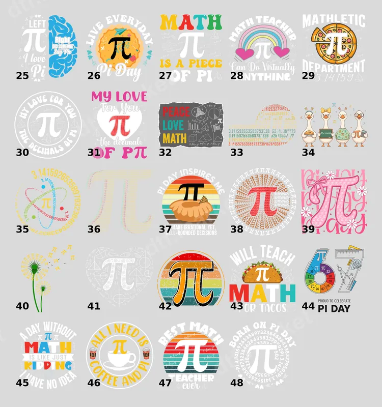 See allDive into Pi Day with our 'Pi Day Inspires Me' DTF transfer, featuring a delightful slice of pie with the iconic Pi symbol. This vibrant ready to press design cleverly combines math humor with a warm, retro sunset aesthetic, making it a perfectly 'well-rounded' statement piece. It’s an ideal way to celebrate the mathematical constant with a playful twist, ready to be pressed onto your favorite apparel. This unique heat press transfer is tailor-made for math teachers, students, and anyone with an appreciation for witty puns and numbers. It makes an excellent gift for Pi Day celebrations, end-of-year teacher appreciation, or even a casual everyday statement for the mathematically inclined. Showcase your love for algorithms and delicious pie at school events, family gatherings, or just while out and about. Applying your new shirt design is a breeze! Our professional-grade DTF transfers, also known as iron on transfers, work flawlessly on a wide range of materials, including cotton, polyester, and various fabric blends. Simply use a heat press at 300-325°F for 15 seconds with medium pressure. For household irons, ensure even, firm pressure. There's no tedious weeding required, making custom apparel creation quick and hassle-free. Experience superior quality with our direct to film transfers. Each design is printed with vibrant, long-lasting colors that resist cracking, peeling, and fading, even after multiple washes. The result is a soft-to-the-touch finish that feels like part of the fabric. Our heat press ready transfers are crafted using premium DTF film and strong adhesive, ensuring your custom transfer will look fantastic and last for years.