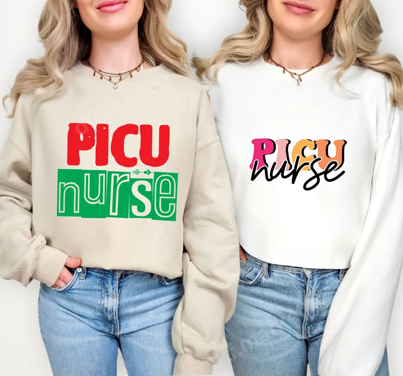 See allThese vibrant DTF transfers showcase two distinct "PICU Nurse" designs, perfect for showing pride in your vital profession. The first design features "PICU" in bold red with "nurse" in a striking green outline, creating a clean, impactful look. The second offers a trendy, retro vibe with "PICU" in a playful multi-color gradient and "nurse" in elegant script. Each ready to press design is crafted to make a statement on any garment. This collection of heat press ready designs is an excellent choice for dedicated PICU nurses, pediatric nursing students, and healthcare professionals. Whether you're looking for a thoughtful graduation gift, celebrating Nurse Appreciation Week, or simply want to personalize your everyday scrubs and workwear, these apparel transfers offer a unique way to express your passion for pediatric critical care. They're also ideal for nursing school events or team gatherings, perfect for creating custom t-shirt transfers. Applying your new DTF transfer is incredibly straightforward. These versatile designs adhere beautifully to a wide range of fabrics including cotton, polyester, and their blends, making them perfect for almost any apparel. For best results, use a heat press at 300-325°F for 15 seconds with medium pressure, then cold peel. A household iron can also be used. Forget the hassle of weeding vinyl transfers; these designs come ready to press directly onto your chosen item. Experience professional-grade quality with our vibrant and durable DTF transfers. Each heat press transfer ensures brilliant color retention and a soft, flexible finish that resists cracking and fading, even after multiple washes. Printed on premium DTF film with a strong, reliable adhesive, these designs provide a long-lasting, high-quality addition to your wardrobe. Elevate your apparel with an iron on transfer that truly stands out.