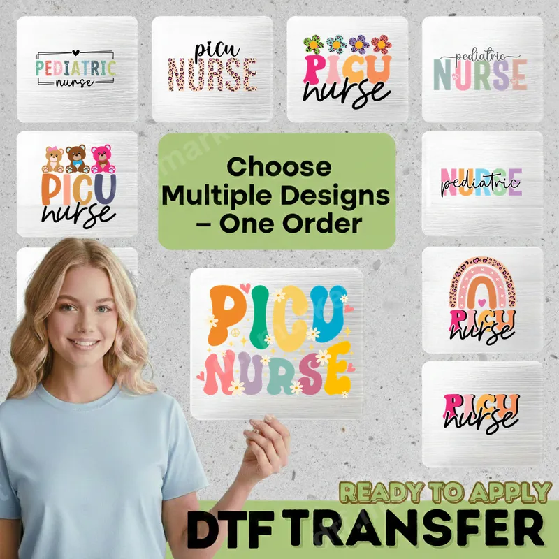 PICU Pediatric Nurse DTF Transfers Collection - Ready to Press Designs