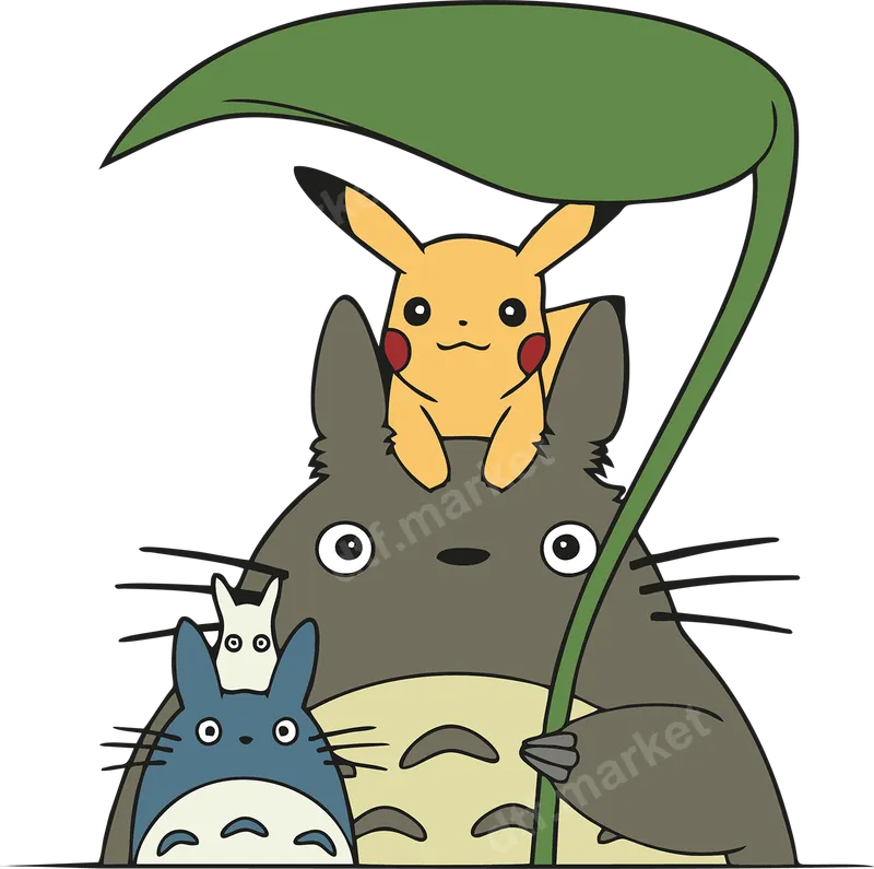 Pikachu Totoro Crossover DTF Transfer | Cute Anime Friends