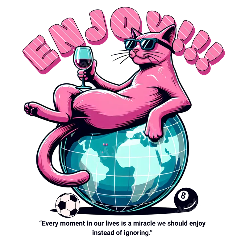 Pink Cat on Globe "ENJOY!!!" DTF Transfer | Motivational Quote