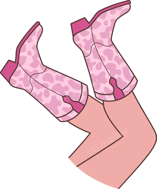 See allThis playful DTF transfer features legs kicking up, adorned in vibrant pink cowboy boots with a stylish light pink cow print. It captures a fun, Western-chic aesthetic perfect for making a bold fashion statement. This ready to press design combines classic country charm with a modern, trendy twist, ensuring your apparel stands out from the crowd. This unique shirt design is ideal for anyone who loves country living, Western fashion, or a touch of whimsical flair. Perfect for bachelorette parties, country music concerts, rodeo events, or as a fun birthday gift. Easily create custom apparel for girls’ trips or to add a sassy touch to your everyday wardrobe. This versatile iron on transfer is sure to be a hit. Applying this heat press transfer is incredibly simple. It adheres beautifully to cotton, polyester, and blends, perfect for almost any garment. For best results, use a heat press at 300-325°F for 15 seconds with medium pressure. Great results can also be achieved with a household iron. This t-shirt transfer requires absolutely no weeding, saving you time and effort. Each apparel transfer from dtf.market is crafted with professional-grade DTF film, ensuring vibrant colors and crisp details. Our transfers are designed for exceptional durability, resisting cracks and peels, and maintaining a soft hand feel. While some buyers mistakenly call them vinyl transfers, DTF offers superior stretch, washability, and a lightweight feel. You'll receive a high-quality product with strong adhesive.