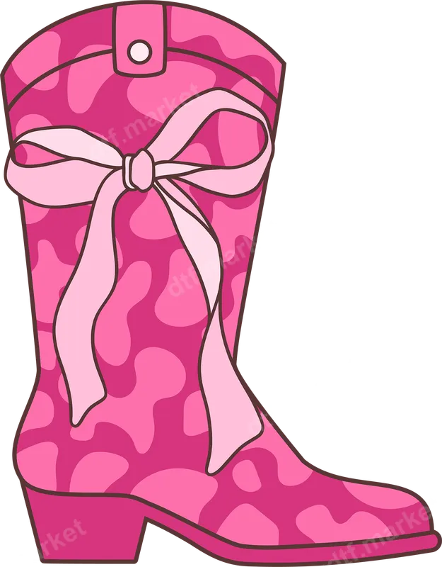 See allDive into the Western trend with this eye-catching pink cowboy boot DTF transfer. Featuring a playful, abstract pink splotch pattern and adorned with a sweet light pink bow, this design brings a vibrant, feminine twist to classic Western style. It's a high-quality, ready to press direct to film transfer that offers intricate details and rich color. This unique iron on transfer is perfect for the modern cowgirl, country music enthusiast, or anyone who loves a touch of playful Western flair. Ideal for bachelorette parties, rodeo events, country concerts, or simply adding personality to your everyday wardrobe, it makes a fantastic gift for friends and family who appreciate trendy, spirited designs. Applying this heat press transfer is incredibly simple and requires no weeding, saving you time and effort. Our premium heat press design works beautifully on a wide range of fabrics, including cotton, polyester, and their blends. For best results, use a heat press at 300-325°F for 15 seconds with medium pressure, or follow instructions for a household iron. Experience professional-grade results with this durable t-shirt transfer. Our DTF film ensures vibrant colors that resist cracking and fading, maintaining a soft, flexible feel on your garment. The strong adhesive guarantees long-lasting wear, making this an excellent choice for creating custom apparel quickly and easily.