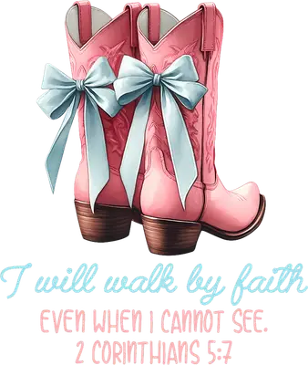 Pink Cowboy Boots Faith DTF Transfer | 2 Corinthians 5:7 Scripture