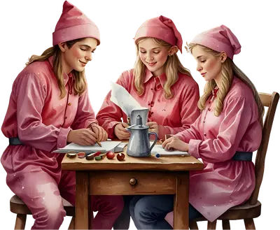 This charming DTF transfer features three delightful young women, reminiscent of cheerful elves or holiday helpers, busily working together at a wooden table. Dressed in soft pink shirts and matching pointed hats, they are focused on papers, pens, and small colorful items, bringing to mind a festive workshop scene. The gentle watercolor-style artwork conveys a heartwarming and industrious vibe, perfect for spreading holiday cheer. This ready to press design is a wonderful way to add a touch of whimsical magic to any garment. This festive design is perfect for anyone who loves Christmas magic, whimsical characters, or unique holiday apparel. Ideal for families creating matching Christmas pajamas, crafters designing custom holiday gifts, or small boutique owners looking for fresh seasonal inventory. It also makes a thoughtful present for teachers, moms, or any "chief elf" in your life, easily transforming into a personalized iron on transfer for tote bags or aprons. This heat transfer design brings joy to holiday gatherings, school events, or simply cozy nights by the fire. Applying this heat press transfer is a breeze, making it suitable for both beginners and experienced crafters. It adheres beautifully to cotton, polyester, cotton-poly blends, and even nylon fabrics. Simply use a heat press at 300-325°F for 15 seconds with medium pressure, or apply with a household iron (follow specific instructions for best results). There's no tedious weeding required—just peel and press! Create custom t-shirts, cozy hoodies, festive sweatshirts, unique tote bags, or charming pillow covers and baby onesies with ease. For lasting durability, wash garments inside out and tumble dry low. Experience superior quality with this vibrant, full-color ready to press transfer, showcasing fine details and rich hues. It's crack-resistant and boasts a soft, lightweight feel, unlike heavy vinyl. Each direct to film transfer is expertly printed on premium DTF film, featuring a strong adhesive backing to ensure professional, long-lasting results on all your apparel projects. Elevate your creations with a durable, high-quality heat transfer decal that looks fantastic.