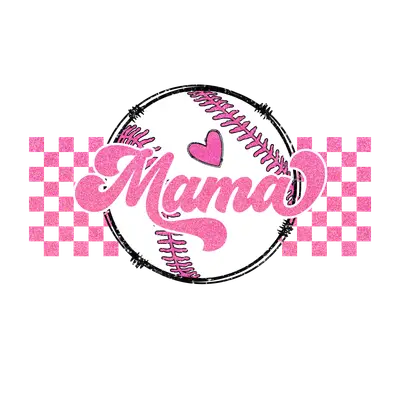 See allCelebrate your favorite baseball or softball mom with this eye-catching DTF transfer! Featuring the word "Mama" in a shimmering, glittery pink script font, complete with a sweet pink heart, this design is centered over a classic distressed white baseball with black stitching. Flanking the baseball are cool pink and black checkerboard patterns, adding a trendy edge. This high-quality, ready to press design is perfect for showing off game-day pride with a touch of sparkle.