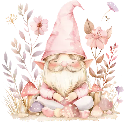 Pink Hat Gnome DTF Transfer | Cozy Woodland Flowers & Mushrooms