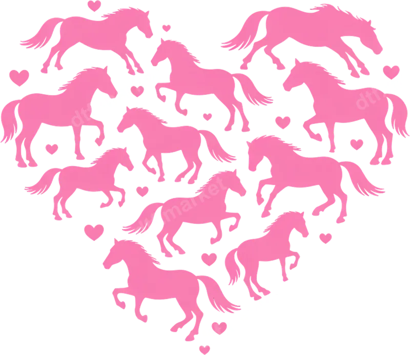Pink Horses Heart Love DTF Transfer | Ready to Press Equestrian Design