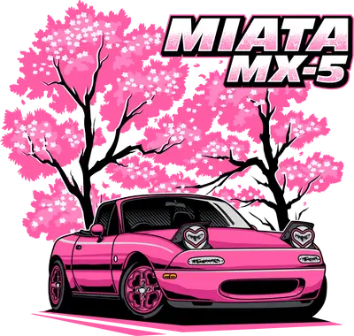 Pink Miata MX-5 JDM Car DTF Transfer with Cherry Blossoms