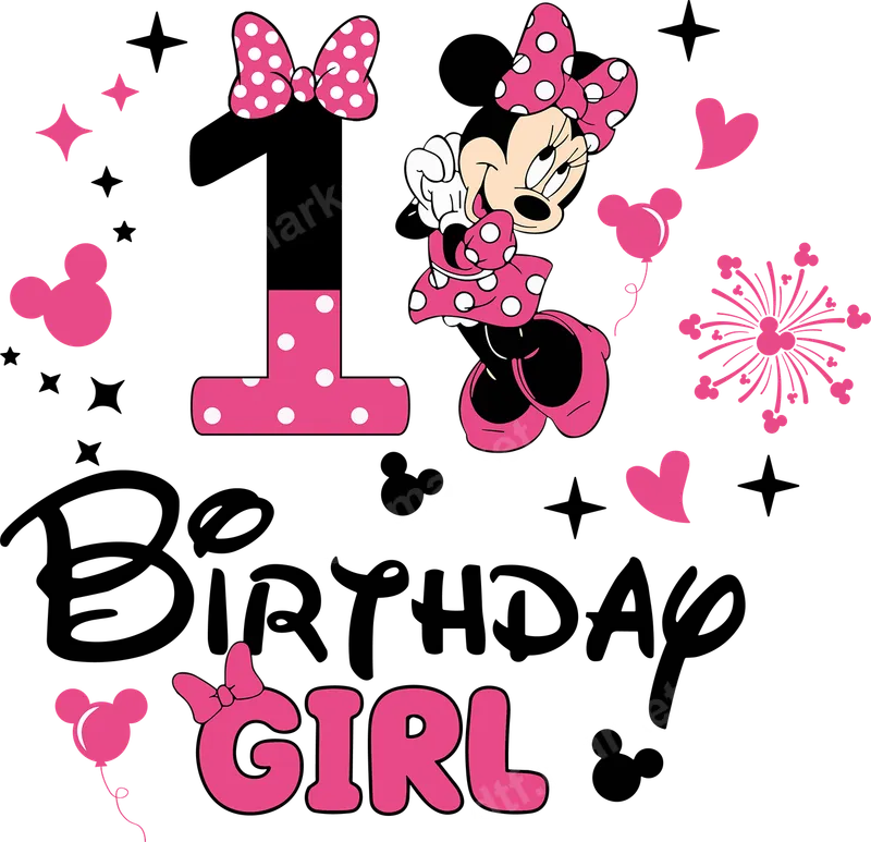 Pink Minnie Mouse 1st Birthday Girl DTF Transfer Design