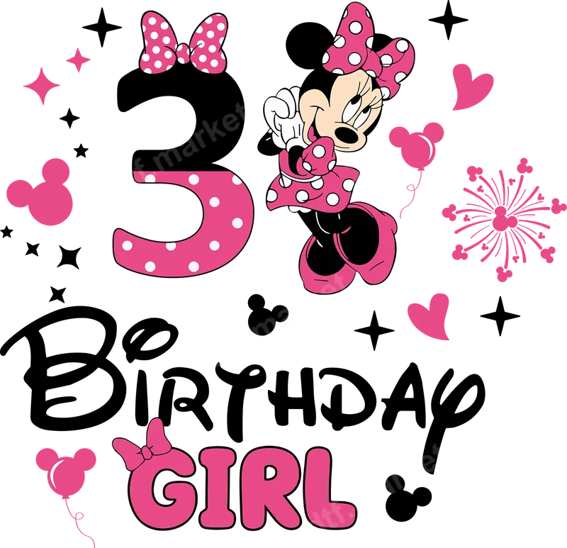 Pink Minnie Mouse 3rd Birthday Girl DTF Transfer Ready to Press