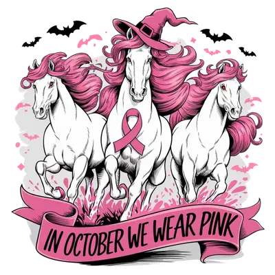 Pink October Horses Witch Hat DTF Transfer - Breast Cancer Awareness