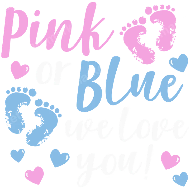 Pink or Blue We Love You Gender Reveal Baby Feet DTF Transfer