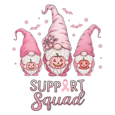 Pink Ribbon Gnomes Support Squad DTF Transfer - Breast Cancer Awareness Halloween